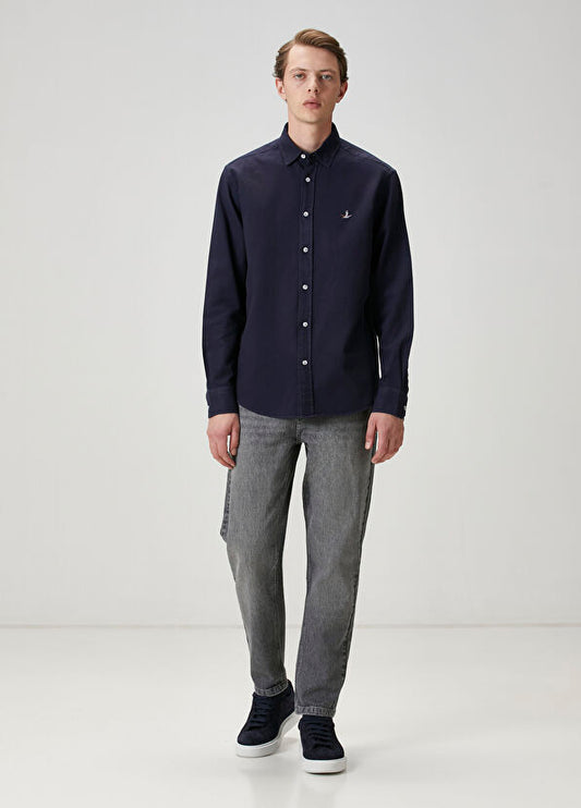 Oversize Şerit Detaylı Erkek Mavi Gömlek EOL-15525