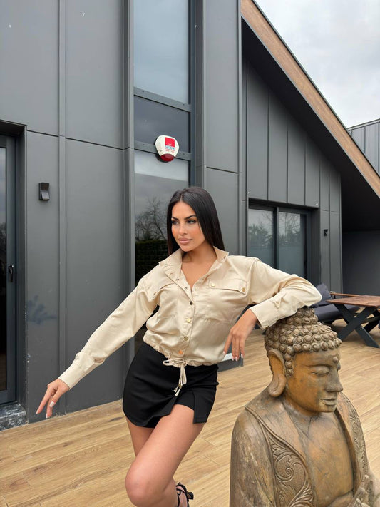 Saten Düğmeli Gömlek Krem