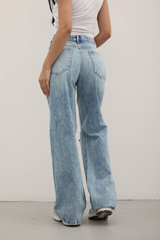 Loose Cut Jeans with Knee Ripped Detail