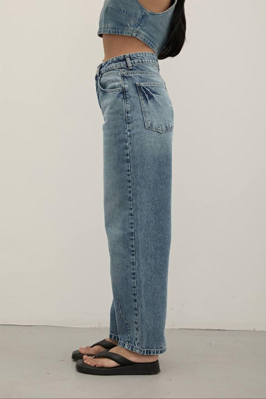 Loose Fit Laser Stomach Blue Jean