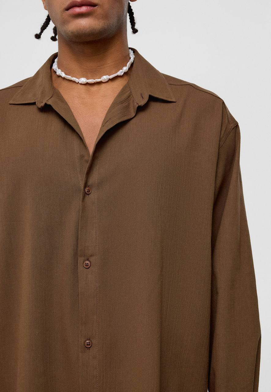 kahverengi erkek gömlek, oversize yazlık gömlek, erkek doğal ton gömlek, 2025 yaz erkek modası, salaş erkek gömlek, rahat yazlık erkek üst giyim