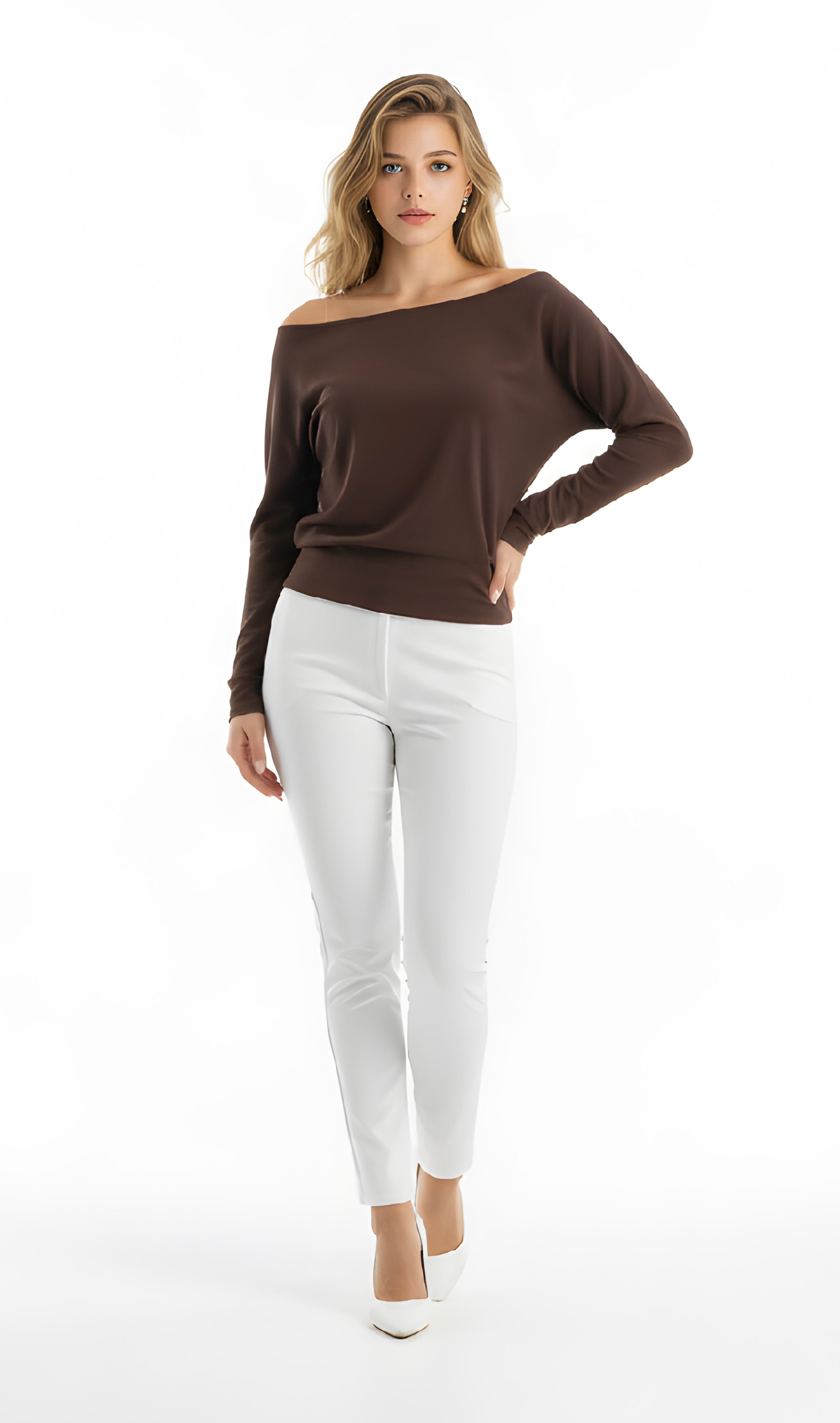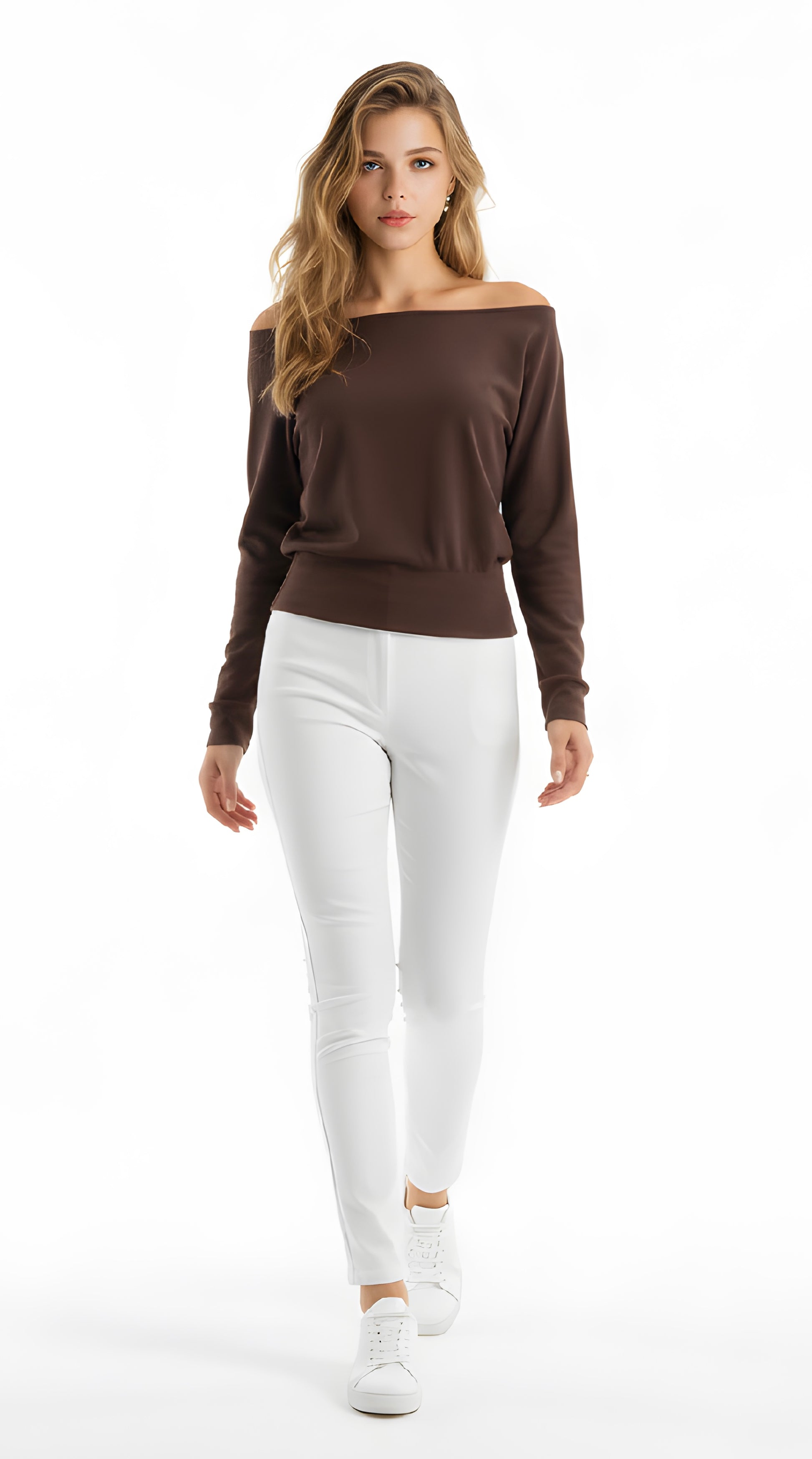 Kahverengi Kayık Yaka Bluz