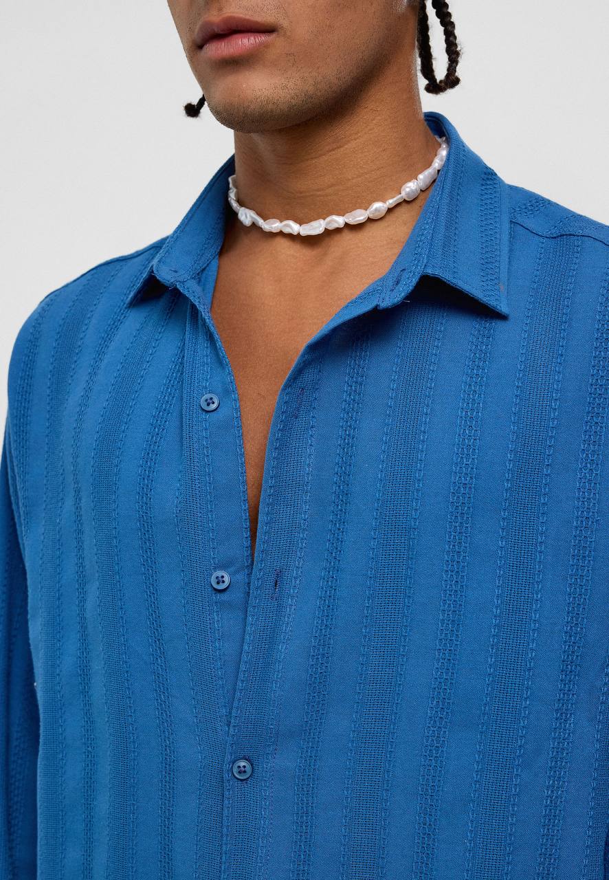 Mavi keten gömlek erkek , oversize yazlık gömlek , erkek şerit detaylı gömlek , nefes alan erkek gömlek , yazlık beyaz gömlek 2025